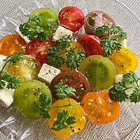 今回は数種類のトマトを使用し、カラフルに仕上げました。チーズは加熱を行わなくても食べられるものを使用しています。ご使用のチーズによっては加熱をしないと食べられないものもございますのでご注意ください。
