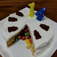 待ちきれず、ロウソク吹き消す前に本人にカットしてもらいました。包丁がたまたまハードグミに刺さり、上手くカット出来ずイライラしていたので、コーラのハードグミは入れない方がよかったかな💦