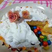 バームクーヘンでかくれんぼケーキを作ってみました。息子が喜んでくれました。