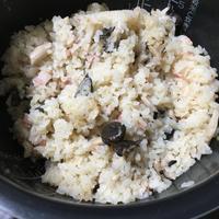 玉ねぎ多目だったので水分が出てご飯が柔らかくなるかと思い、水の量を少なめにしていたのですが、炊き上がりは少し硬めに仕上がったので、分量通りの水の量でいいかも。