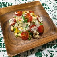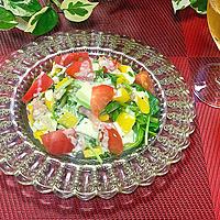 冷蔵庫の残り物一掃で美味しい前菜サラダが出来上がりました。