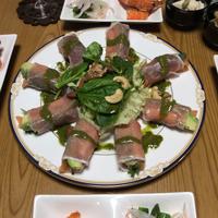 お正月料理の一品にも作って、好評でした!アボカドが、なかったのでスライスしたキュウリにのせてクリームチーズ、サーモンを生ハムで巻いてます。