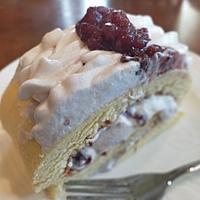 - 10 8の残りのホイップクリームを絞り袋に入れ、9の上に絞り、トッピング用のゆであずきを飾り、切り分けてお皿にのせたら完成です。