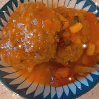 トマトソースを煮詰めすぎ、肉団子も焦がしてしまいましたが、美味しいです♡