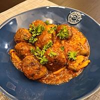牛豚合びき肉は豚ひき肉に代えてもお作りいただけますよ。トマトやアンチョビの風味豊かな肉団子で、おもてなしにもおすすめの一品です。ぜひ作ってみてくださいね。