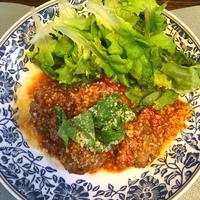 冷蔵庫にあるものでできました🙌ひき肉が2倍の量あったのですがトマトがひとつしかなかったので、トマトジュースを加えました🍅オリーブがなかった代わりにアスパラを大きめのみじん切りにして加えてみました!歯ごたえがあって美味しかったです!また作ります🍽