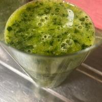 オレンジジュースベース、おいしい!ミキサーに入り切らなかったのでオレンジジュースは100mlに減らしてはちみつ抜きで作りましたが、甘さ十分でした。逆に小松菜増やしてもいいぐらいかも。