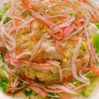 カニカマたっぷり。レタス卵グリンピースなしで、ネギと挽肉でチャーハンを作りました。美味しかった〜。あんかけ大好き。