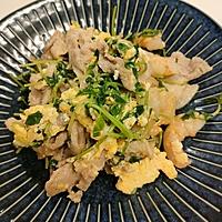 - 4 豆苗がしんなりしたら端によせ、溶き卵を加え中火で炒めます。