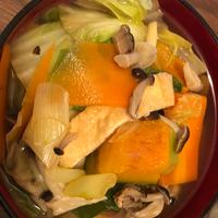 かぼちゃがとろとろに溶け込んで野菜の自然な甘みが広がる温まる一品です。白菜、油揚げに加えて、里芋、ごぼう、きのこ類など、たくさんの野菜を加えてアレンジも楽しめます。味付けは醤油や味噌で好みに調整でき、体の芯からポカポカ温まる優しい味わい。かぼちゃは大きさによって溶け具合が変わるので、食感を楽しみたい場合は大きめにカットするのがポイントです。