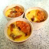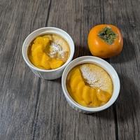 - 6 耐熱の容器に柿を並べ、5を流しこみ170度のオーブンで15分〜30分焼きます。