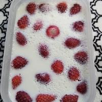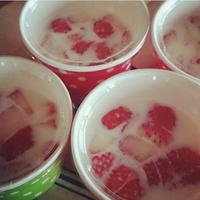 冷凍苺を使いました!牛乳寒天、簡単でおいしいし満たされます^ ^