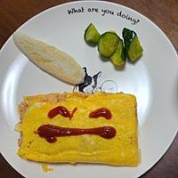 使用するごはんが冷やごはんの場合はレンジで加熱してからケチャップと混ぜてください。 卵はしっかりと溶き混ぜると焼きやすくなり仕上がりもキレイです。 スライスチーズを乗せる時に中央に寄せず少しあけるとがたたみやすいです。