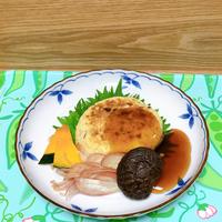 おからで作るハンバーグのご紹介です。お肉は使わずおからとしいたけを加えハンバーグにしました。しっとりとしていてとろみを付けたタレともよく合いますよ。タレやトッピングはアレンジをしてもおいしくお召し上がりいただけますよ。