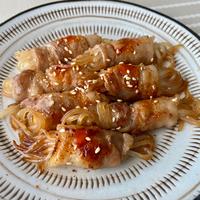 お鍋の具材として使う小結しらたきを、豚肉で巻いてみました。 味付けはめんつゆを使ってお手軽に。 しらたきにたっぷり味を染み込ませるように仕上げるのがおすすめです。 ごはんのおかずに、おつまみに、是非!