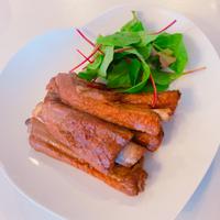 - 5 ベビーリーフを盛り付けたお皿に、4をのせて完成です。