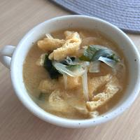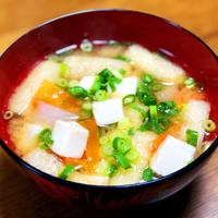 いつもの味噌汁が大変身!トースターかフライパンで焼いた油揚げがカリカリ香ばしく、食感のアクセントに。玉ねぎ、しめじ、えのき、豆腐など具沢山で作るのがポイントです。白だしを加えることでほっこりやさしい味わいに仕上がります。油も抜けてヘルシーなのも嬉しいポイント。焼き時間は2〜3分がベストで、香ばしい香りと食感の変化を楽しめる一品です。