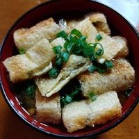 カリカリ油揚げがいい感じです。今日は昨夜の鍋の残りを使ったので出汁も出ていて美味しかったです。