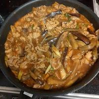 - 7 ナスが柔らかくなってきたら5を入れて絡めるように炒めたら、一旦弱火にし水溶き片栗粉を回し入れます。