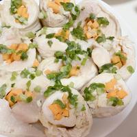 - 5 食べやすい大きさに切り、皿に盛り付け、小ねぎ、ポン酢をかけてお召し上がり下さい。