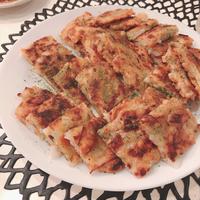 もちもちでおいしかったけど、そのままだと味が薄かったので、上にとろけるチーズをのせ、ポン酢をつけて食べました。次回はとろけるチーズを生地に混ぜて焼く予定!