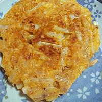 ひっくり返す勇気がなかったので分けて焼きました。大根だけ先に油で炒めて。美味しい!いい塩梅でタレ要らず!次はチーズ入れてみます!
