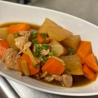 鍋蓋をして蒸すように作ると煮汁を多めに残しつつ大根人参ほろほろに作れます。