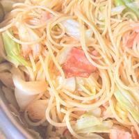 - 7 茹で上がったスパゲティを入れ炒め合わせます。