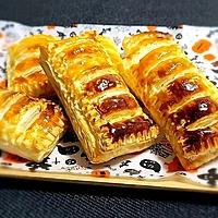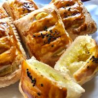 スイートポテト入りのサクサクパイです。 焼きたてがとっても美味しいです。 バターの風味がよく、コーヒーや紅茶によく合います。 スイートポテトは電子レンジで簡単に出来るのでそのまま耐熱容器にいれ、トースターで焼いても美味しくできます。 試してみてくださいね。