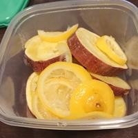 - 準備 さつまいもとレモンは、皮をよく洗っておきます