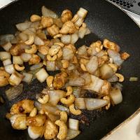 - 6 同じフライパンに中火のまま1とカシューナッツを入れ炒めます。