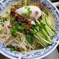肉味噌に玉ねぎを炒め込むとコクと甘みが絶妙なアクセントになります。豆板醤の辛さと、甜麺醤のコクが効いた本格的な味わいで、暑い夏にぴったり。温玉をのせれば、とろ~りした卵黄と相性抜群です。きゅうりやもやしをトッピングすればさっぱりと食べやすい一品に。細麺のそうめんで作っても美味しく、片栗粉でとろみをつければより本格的な仕上がりに。
