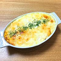 - 7 耐熱皿に5を盛り付け、6をのせてピザ用チーズをかけ、オーブントースターでこんがり焼き色が付くまで5分加熱します。
