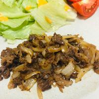 牛肉100g、調味料1/3にして少しだけ醤油も入れました。