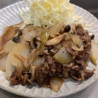 牛肉がすくなめだったので、玉ねぎ1個にして、しめじも追加。