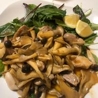 - 4 フライパンにサラダ油をひき、しめじとまいたけを炒めます。