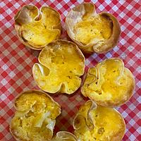 大人気のエッグタルトをおうちでお手軽に作ろうと考えました。まわりは餃子の皮を活用していますが、中身はちゃんとエッグタルト風ですよ。おやつにピッタリですので、ぜひ作ってみてくださいね。