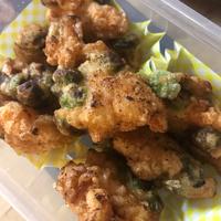 海老を叩いた後、袋の中で材料を全部混ぜて、端を切り絞り出して揚げました!ふわふわぷりぷりで美味しかったです。
