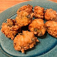 - 3 鍋底から3cm程揚げ油を注ぎ、190℃に熱します。スプーンで2をすくい、形を整えながら入れて5分程揚げます。