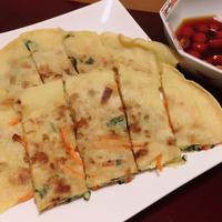 チヂミ粉は市販のものを使用しました。あっさりしていて美味しかったです。