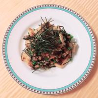 いつもの納豆にひと手間加え、アレンジしてみませんか。今回は油揚げとねぎ、かつお節を加えて、ボリューム感がある一品に仕上げました。かつお節の香りとごま油の風味をきいて、おつまみにはもちろん、ごはんにのせても美味しいですよ。