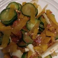 山芋のねばねばとした舌触りとしゃきしゃきとした食感を活かした香味和えです。 梅肉やオクラ、たくわんと一緒に和える事により、食感と風味が増します。 副菜に悩んだ時に、あと一品足りない時にお試し下さい。