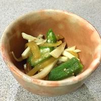 - 1 山芋は皮をむいて短冊切り、オクラは湯がいて乱切り、たくあんは千切りにします