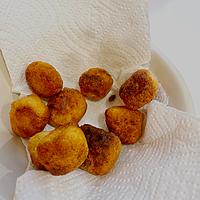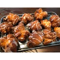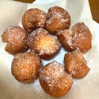 粉を混ぜると粘り気が出て丸められなかったので、スプーン2本を使って揚げました。グレーズの粉糖は半量にしました。