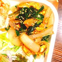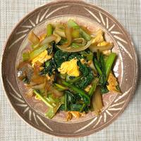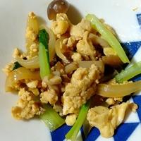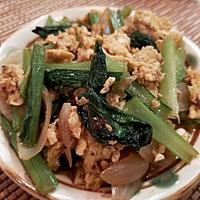 玉ねぎと小松菜と卵のしょうゆ炒め レシピ・作り方