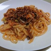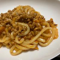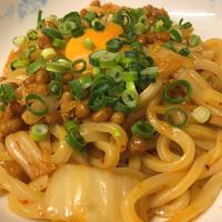 「キムチ納豆焼きうどん」の作り方を簡単で分かりやすいレシピ動画で紹介しています。