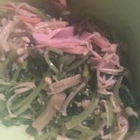 ハムをツナに変えても美味しそうですね。油を切ったツナ(ツナ缶半分ほどの分量)を加えて和えてみてくださいね。