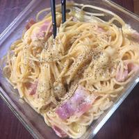 初めてカルボナーラを作ってみました!お皿1つで出来るし、簡単で美味しかったです!!