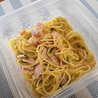 3分の早ゆでパスタを使いました。水は230ccでレンジ加熱は600ワット6分でいい感じに仕上がりました。