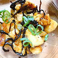 木綿150を2個使用、6等分ずつにカットし焼き、酒・みりん・醤油は混ぜて一気にかけ最後に黒胡椒と塩昆布を絡めた。洗い物もフライパンだけで済む✏️
